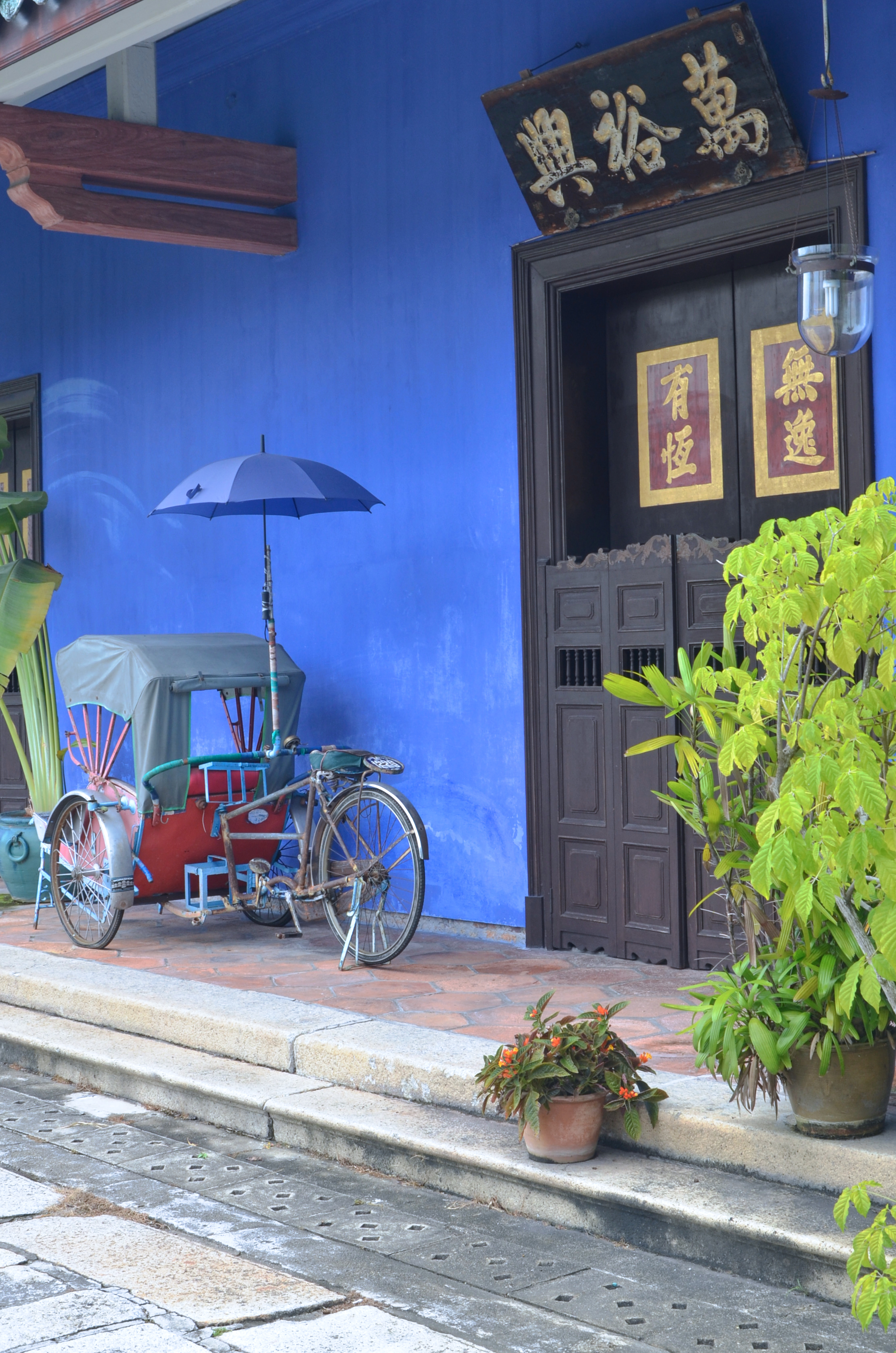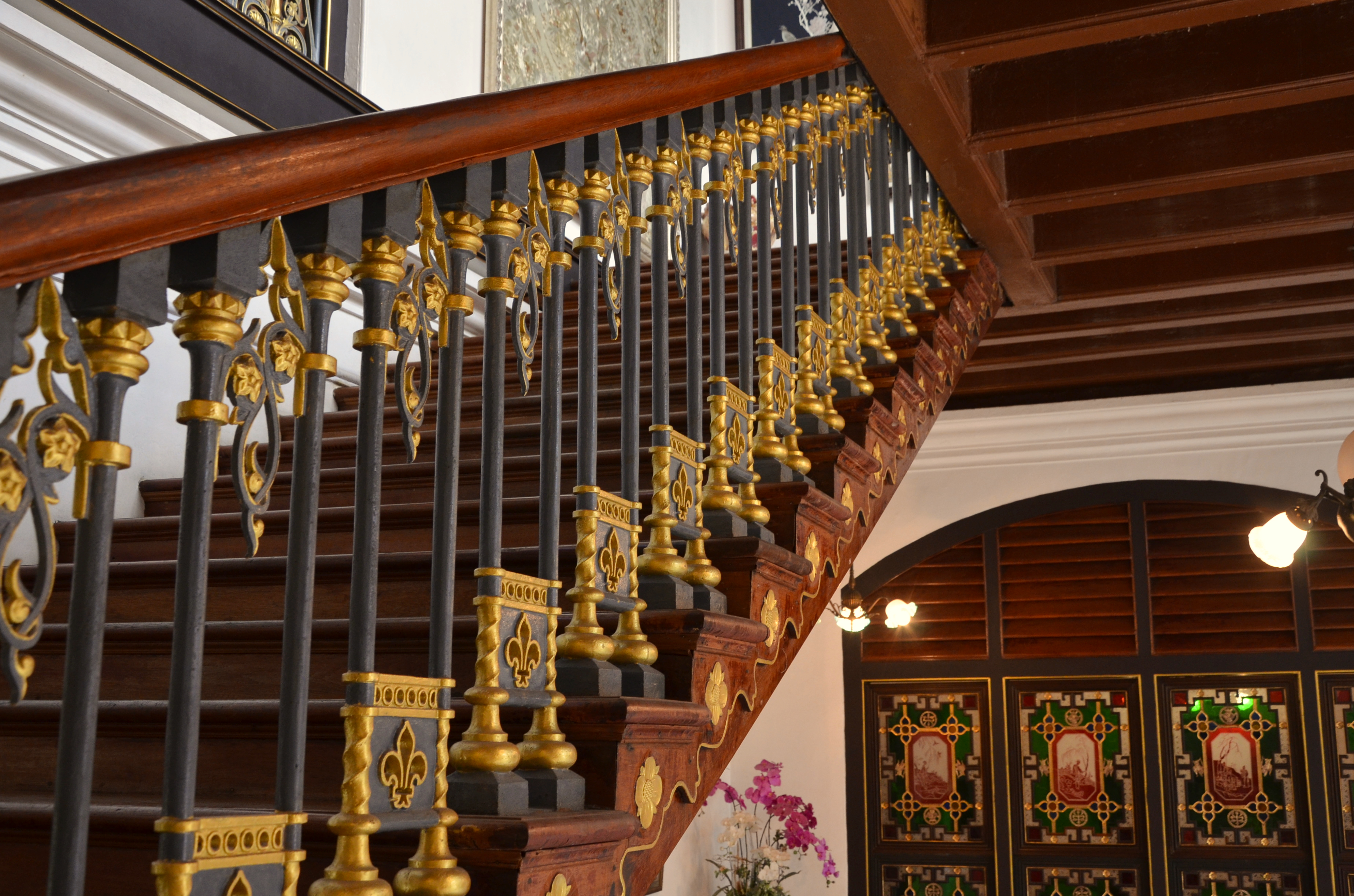 This was the home of another from penniless-to-riches merchant. Chung Cheng Kwee was also made a ‘Kapitan’, or a community leader. This place has a cheery feel to it, and visiting it after touring the Blue Mansion, I can’t help but feel the difference in atmosphere. Anyway, this museum was used for the shooting of several movies depicting the lives of the Babas or Nyonyas – the Straits Chinese because of the beautiful and authentic design and furniture. There are rooms that hold the possessions of 3 generations of Nyonyas – from the turn of the century to the early 1950s, so you can see how the wedding gowns and bridal chambers changed over 3 generations. It holds thousands of artifacts from that period of time, and gives a good glimpse of how Asian culture blends with Western influences. For example next to the Chinese wooden doors painted in traditional gold leaf stands a staircase with rails made in Scotland.